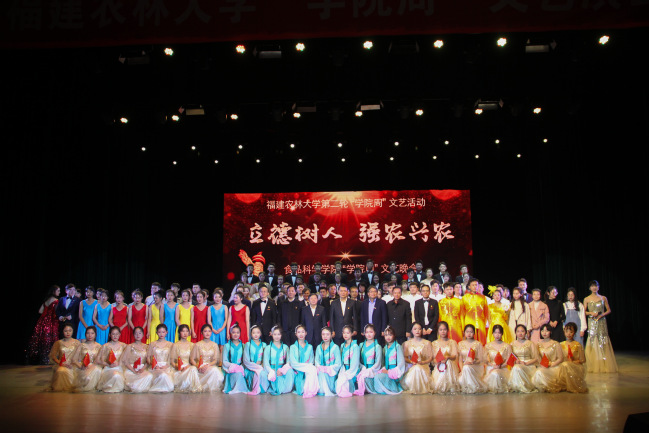 12月22日晚,食品科学学院“立德树人 强农兴农”“学院周”文艺晚会在校大礼堂举办。校领导严金静、兰思仁、庄祥生、曾华平、郑宝东,各学院、各机关部门负责人以及在校师生一同观看了演出。