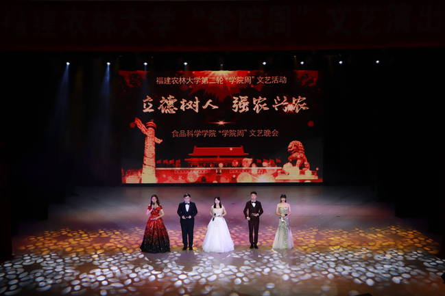 晚会分为“栉风沐雨秉初心”“守正创新谱华章”“风劲扬帆再启航”三个篇章。美轮美奂的开场舞《盛世花开》营造了唯美的氛围,拉开了晚会的序幕。铿锵有力的朗诵《祖国,一首唱不完的恋歌》、充满汉唐风韵的舞蹈《采薇》、歌曲串烧《新征程·追梦人》、激昂向上的舞蹈《青春的告白》饱含了师生对祖国母亲的深厚感情,传承和弘扬了中华优秀传统文化。我校南非德班理工大学孔子学院的同学们用一首《Dream It Possible》诠释了中南两国人民的美好情谊与共同发展繁荣的愿景。话剧《食育·润在其中》、情景剧《不忘初心,共创美好》、师生大合唱《筑梦农大·歌唱祖国》诠释了时代主题,展现了学院坚持立德树人,推进全员、全过程、全方位育人,推动思政课程与课程思政同向同行的责任意识和思想理念。