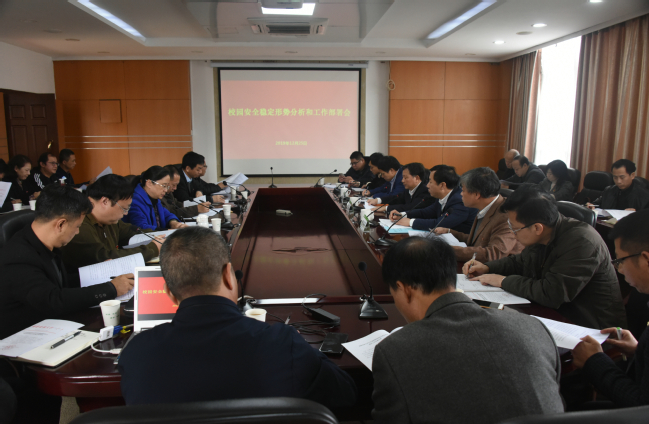 形势分析会上,校安全稳定工作领导小组办公室通报了今年以来各类检查反馈问题及整改情况,有关部门针对安全领域存在的重点难点问题作了汇报,并就深化问题隐患治理和矛盾纠纷化解工作提出思路。曾华平、郑郁善分别对安全隐患整改工作、安全教育引导等工作提出要求,强调要把落实好安全稳定责任与创建“平安校园”、“文明单位”紧密结合起来,不断健全长效机制,加强安全教育管理,提高安全防范意识,加强重点场所、要害部位、关键环节巡查整改力度,坚决堵塞漏洞,确保校园和谐稳定。