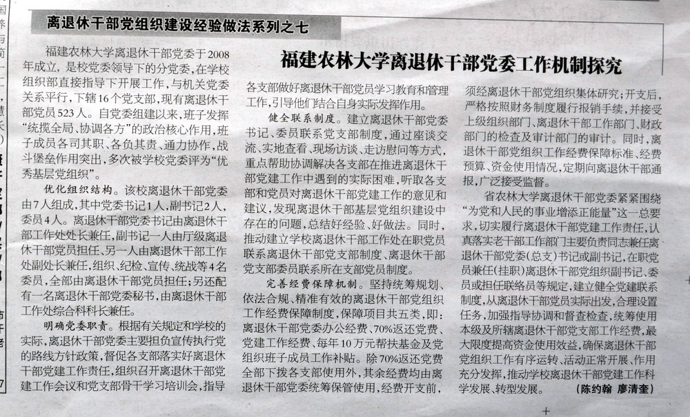 福建老年报(2019-12-24)3版:开云网页版离退休干部党委工作机制探究