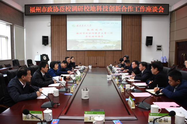 座谈会上,科研院负责人汇报我校科技创新与社会服务工作,以及学校与福州市科技合作情况。双方还就加强市政协与学校科技创新合作的机制、项目和实施计划等方面深入交流探讨。兰思仁表示,学校历来重视校地科技创新合作,建议双方在提升城市宜居品质、推进乡村振兴、推动现代农业发展等重点领域开展联合调研和协同创新,为福州市高质量发展提供智力支持。何静彦高度评价我校近年来取得的成就,希望我校充分发挥科技和人才优势,积极参与福州市政协推进的智库建设,推动学校更多的专家参与决策咨询、服务福州市经济社会发展。