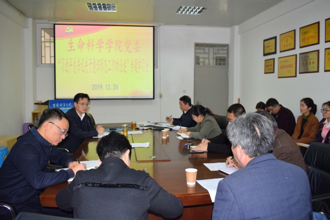 12月26日上午,生命科学学院在生科楼404室召开党委(扩大)会议,专题学习习近平总书记关于意识形态工作重要论述。学院党委委员、党支部书记参加会议,会议由学院党委书记林豪森主持。