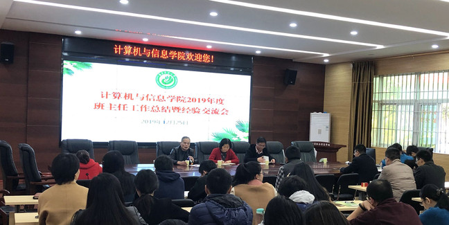 12月25日下午,计算机与信息学院在宝铃楼103教室召开2019年度班主任工作总结暨经验交流会,学院党委书记孙淑芹、院长陈日清、学院党委副书记吴鹏程及全体班主任参加会议。会议由吴鹏程主持。