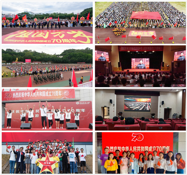 32、10月1日,我校组织了庆祝新中国成立70周年系列活动,包括在北区田径场举行庆祝中华人民共和国成立70周年升旗仪式;组织师生在校礼堂集中收听收看庆祝中华人民共和国成立70周年大会盛况等。学校还广泛开展了“唱响国歌,献礼新中国成立70周年活动”。