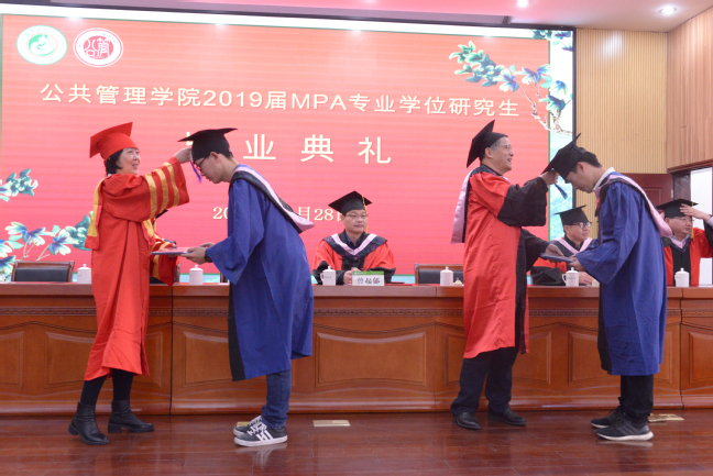 12月28日上午,公共管理学院2019届MPA专业学位研究生毕业典礼在常盛会议中心举行。学院党政领导、MPA研究生导师、毕业生及部分家属出席毕业典礼。副院长阮晓菁主持典礼。