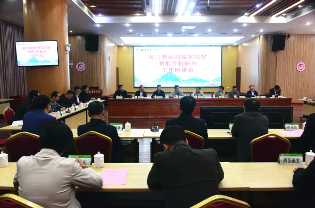 兰思仁在总结讲话中指出,召开这次座谈会是贯彻落实中央和省委关于脱贫攻坚决策部署的实际行动,希望为我校4个对口帮扶村和省直单位、县、乡之间搭建交流平台,积极汇聚力量,支持对口帮扶村加快扶贫开发。他衷心感谢省直各有关单位长期以来对学校的关心厚爱和支持,充分肯定4位驻村干部前期工作成绩,希望他们进一步把握机遇,按照因地制宜、量力而行原则,积极争取一批高效益扶贫项目落地,广泛发动村“两委”和广大村民认真抓好项目实施,有效带动建档立卡户脱贫致富,带动乡村特色产业开发。他表示,学校将继续发挥自身优势,协助各级政府抓好对口帮扶村扶贫开发,根据当地实际需求,通过组织专家技术服务、开展师生捐书和“三下乡”活动等形式,为对口帮扶村脱贫攻坚和乡村振兴提供支持和帮助。