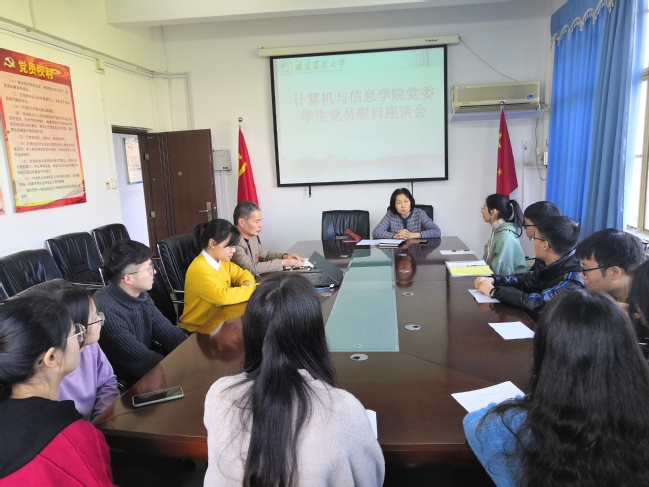 1月6日上午,计算机与信息学院在学院三楼会议室召开慰问学生党员座谈会。学院党委书记孙淑芹、副书记吴鹏程以及12位学生党员参加了座谈会。