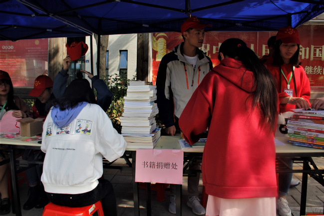 2017级商务经济学的王奕婷捧着一叠专业书籍到活动现场捐赠,她表示:“在我看来,把闲置的书籍捐献给农村的小朋友,可以拓展他们的知识面,让他们在阅读书籍中健康成长,这也是我的一份小心意。”
