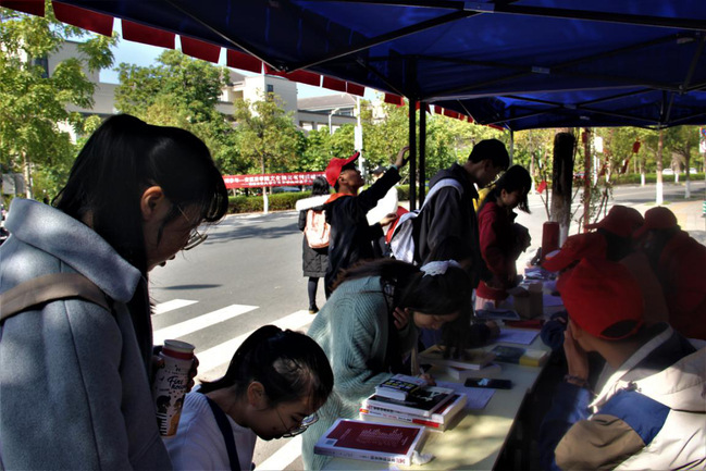 活动现场,同学们积极参与活动,捐赠的书籍不仅有专业相关书刊、工具书,还有丰富的课外书籍,报刊杂志等。参加捐书同学还主动写下参加此次志愿活动的感悟或祝福语,挂于志愿树上。