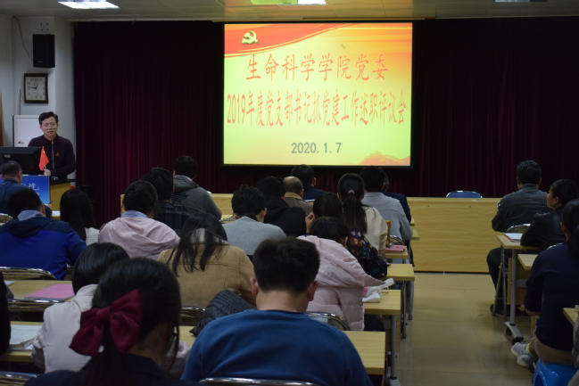 1月7日下午,生命科学学院党委在生科楼414室召开2019年度下属党支部书记抓基层党建述职评议会,学院院党委委员,党支部书记、党支部支委、主要学生干部代表等共计80余人参会。