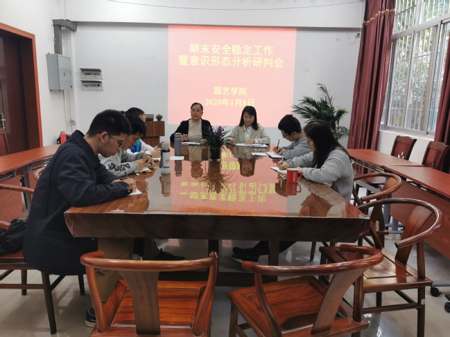1月8日下午,园艺学院召开期末安全稳定工作暨意识形态工作分析研判会,院党委书记张华英,党委副书记周娟娟,全体辅导员参加会议。