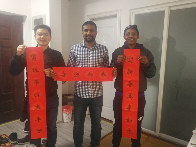 会后,叶扬捷带领留管办工作人员、留学生辅导员等分批走访留学生并送上春联,给留学生致以春节祝福,让留学生感受中国传统节日习俗。受访留学生对学院的亲切关怀表示感谢,表示要刻苦钻研,感知中国,当好中外友谊之桥。