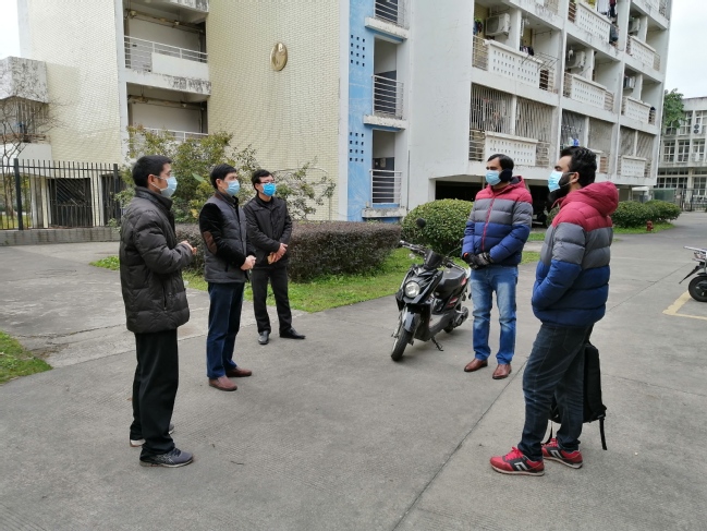 院党委书记肖红新、院长吴锦程、辅导员黄剑峰走访留学生公寓,为留学生排忧解难