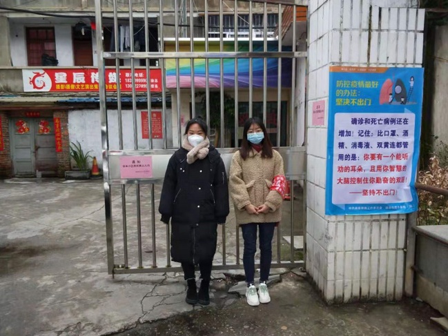 2016级公共事业管理党员郑可晴正在值守粮食局宿舍