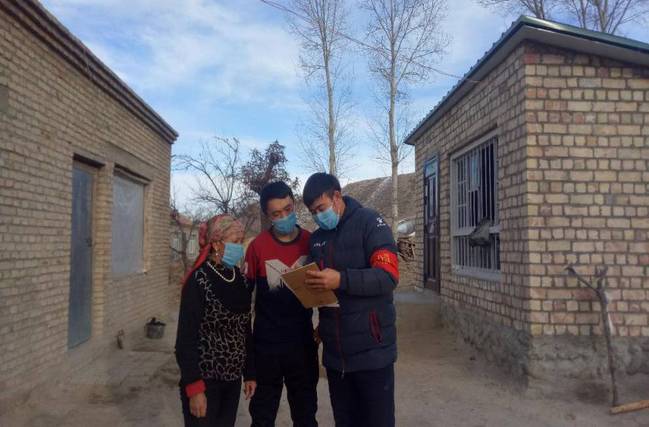 2016级土地资源管理叶勒夏提配合村干部防疫排查