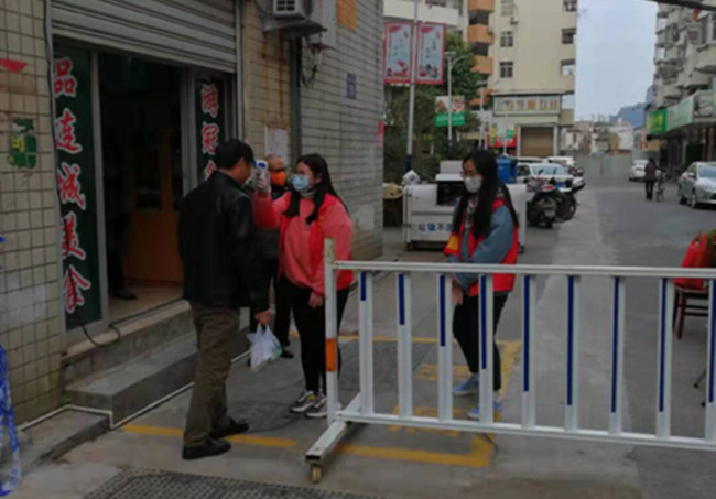 2018级金融学专业的陈慧冰同学说:“虽然我还是一名学生,但在这个防疫的关键时刻,我希望自己能够出一份力。”作为志愿者,她的工作内容是在各街道小区卡口进行体温检测、核查出入证并进行疫情的宣传。在疫情面前,她选择勇敢地站出来和奋战在一线的工作者们共同抗击疫情。