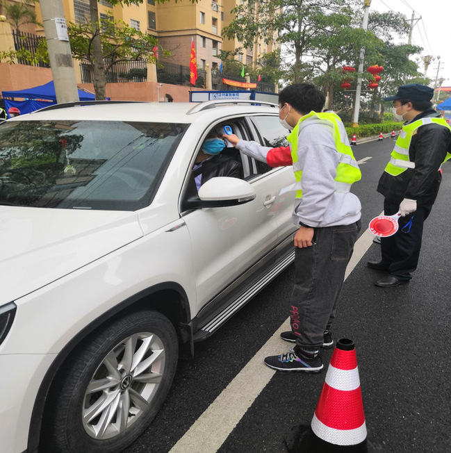 2018级金融学专业的刘溪峻同学,发挥了一名共青团员的先锋精神。他的工作主要是对于进出社区的居民做交通登记劝导,协助测量体温以及口罩佩戴提醒等。刘溪峻说:“在我的家乡,有许许多多的志愿者挺身而出,希望我的参与能够为这场抗疫攻坚战尽一份绵薄之力,武汉加油!漳州加油!中国加油! ”