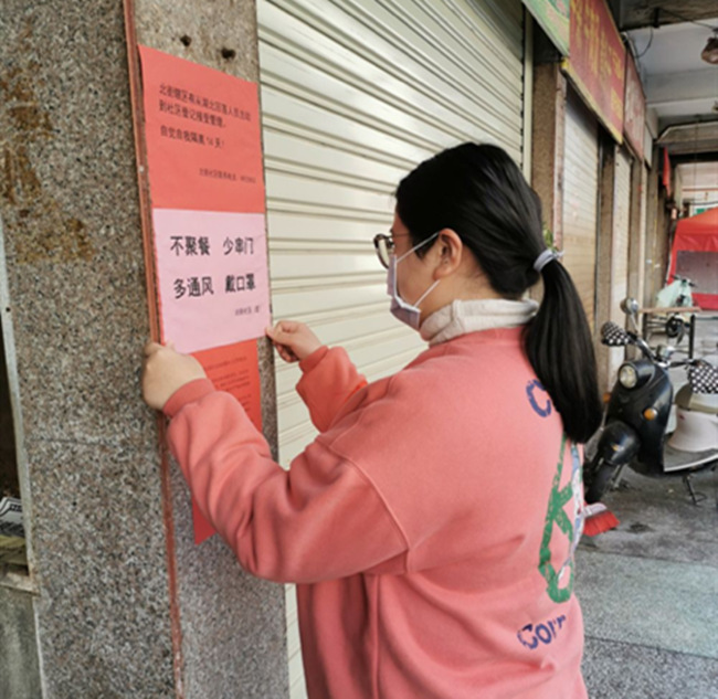 2018级国际经济与贸易专业的刘建榕同学积极参加了防疫工作。她介绍道:“作为一名入党积极分子,我积极参加了我们村组织的疫情防控志愿活动。通过发宣传单的形式,让更多人能够意识到这次疫情的严重性,懂得如何防控。希望这次的志愿活动能够促进我们村的疫情防控工作。”