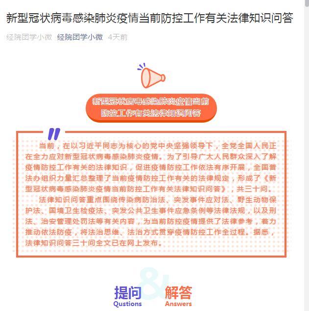 《新型冠状病毒感染肺炎疫情当前防控工作有关法律知识问答》微文