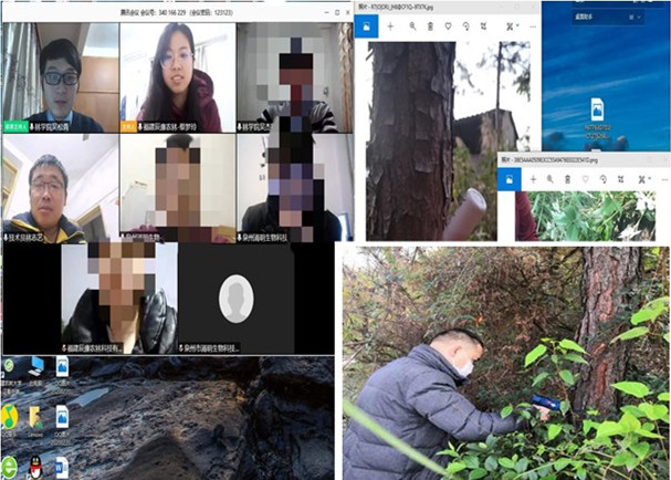 松材线虫病防控技术研发团队与福建辰康农林科技有限公司在前期签订的合作开发协议的基础上,在新冠疫情防控期间,将处于中试阶段的松树注干保护剂等技术成果落地企业,共同推动该项技术成果的中试、熟化和产业化,帮助基层积极应对松材线虫病防控工作。为了防止疫情通过施工人员的聚集造成扩散蔓延,在新冠疫情防控期间,团队进一步优化了松材线虫病防控工程管理系统,实现了松材线虫病防控作业中对清理枯死木、挂设诱捕器、化学防治、天敌防治、注干剂保护等野外作业信息的自动记录、监督和管理,极大地提高了工作效率,有效地减少了作业人员聚集。利用腾讯会议和钉钉等软件,为基层一线人员提供技术指导和培训,指导生产,普及新冠病毒防控知识,促进基层复产复工,新冠疫情和松材线虫病防控两不误。