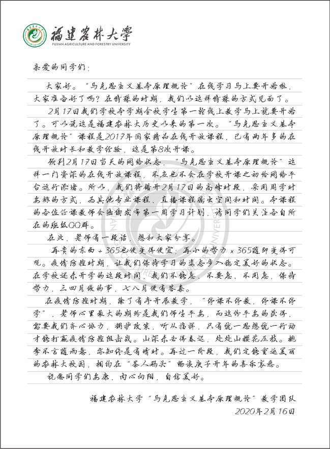“马克思主义基本原理概论”课程团队致学生的一封信