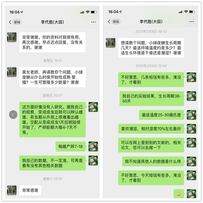 每年2月份是绿色防控办开展工作的关键时期,要做好虫情普查,摸清害虫发生区域和防治关键时期,确保茶叶质量、产量关。大田县农业农村局绿色防控办主任李代胜就害虫发生规律等问题,向我校咨询,支部宣传委员金珊同志用科学数据通过微信方式进行详细解答。