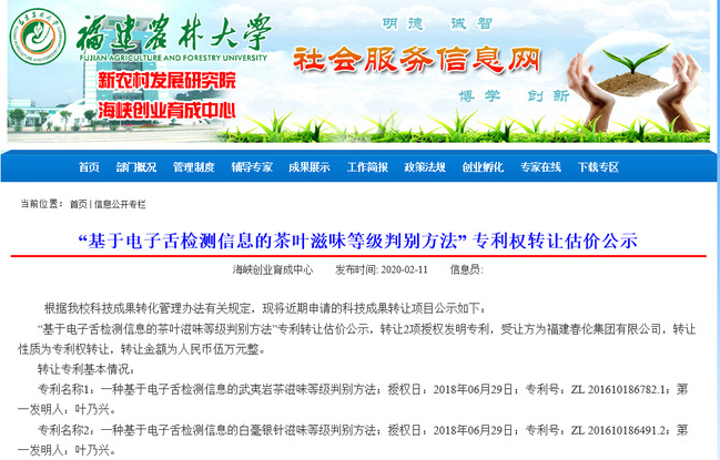 疫情防控期间,茶学教工党支部加强科研成果转化落地,提升企业的生产效率。近期,叶乃兴老师为第一发明人的2项发明专利有意受让福建春伦集团有限公司,进入专利转让估价公示阶段。