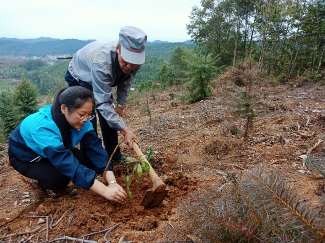 叶方婷同学参与当地春耕栽种新树苗活动