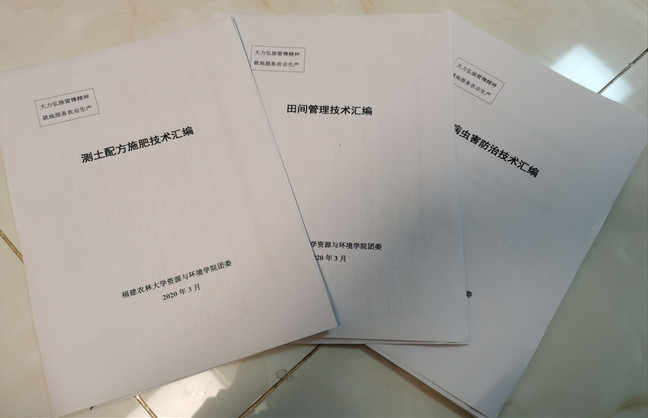 2017级环境工程专业本科生暨运晖、农业资源与环境专业本科生任驿等学院团学骨干根据返乡同学在服务当地农业生产中收集到的当地农户反馈的病虫防治、配方施肥、田间管理等方面的技术需求,及时组织同学收集相关技术资料,并整理成电子手册,通过微信、QQ群等渠道转给有需求的农户,为他们农业生产提供技术支持。