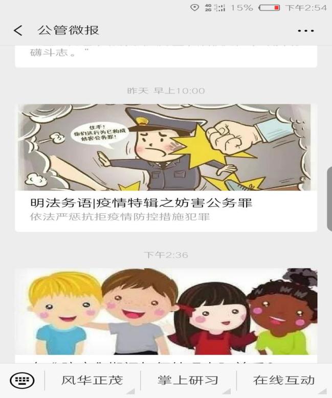 建设一个防疫普法案例库。结合当前疫情防控中发生的典型案例,充分应用学院微信公众号《公管微报》线上平台,以每日一案的方式,围绕“妨碍公务”“治安管理处罚”“编造、传播虚假信息”等热点持续推出疫情防控中的典型案例,共7篇。“以案释法“,通过警示教育,强化学生法治观念。