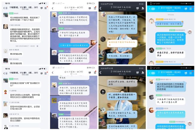 课后,各年级辅导员组织同学们展开了热烈的讨论。风景园林专业研究生高栩婧表示,在当前这场疫情防控阻击战中,广大青年在勇挑重担中经受历练,在报国奋斗中获得成长,在无私奉献中砥砺精神,在关心民生中坚定信仰,让雷锋精神在新时代有了新的阐释。2017级产品设计专业黄君认为:“不管身在何方,我们都要提醒自己敬畏自然、顺应自然、保护自然,实现人与自然的和谐共生。”辅导员黄登良表示,中国抗疫彰显了中国共产党领导和中国特色社会主义制度的显著优势,而中国共产党的领导是中国特色社会主义制度的最大优势,我们要引导广大青年学生坚定不移跟党走。