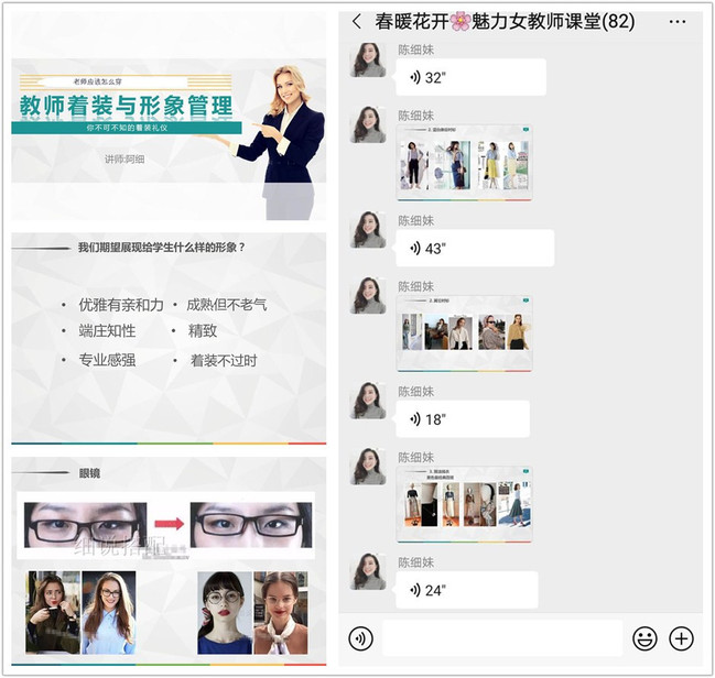 陈细妹从教师的职业定位出发,从穿衣和表达、色彩与气质表达、职场配饰、职场单品推荐等四个方面着重讲解。有图片、有案例、有讲解、有点评,内容深入浅出、容易学以致用。女教师们积极参加线上讨论,气氛热烈。