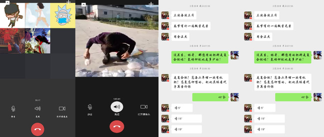 研究生们通过微信视频与微信聊天讨论工作方案、指导农户科学管理果园