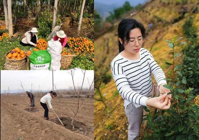 黄晓曼、徐凯悦、刘有在田间开展“助农春耕”活动