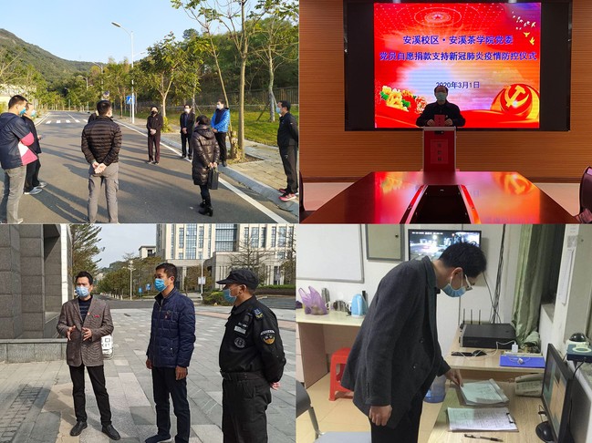 新型冠状病毒肺炎疫情发生以来,安溪茶学院党委坚决贯彻落实习近平总书记重要指示精神,全面落实党中央、国务院以及教育部、福建省委和校党委关于疫情防控工作的各项部署,学院党委雷国铨书记林金科院长带头坚守一线、靠前指挥,科学统筹、精心谋划,亲自指挥、落实各项工作部署,全体政工干部坚守防控工作一线,充分发扬斗争精神,时刻保持备战状态,勠力同心,全力以赴,为全面保障师生安全、维护校园稳定做出应有努力!