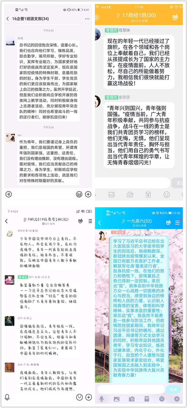 各班团支部在线热烈讨论