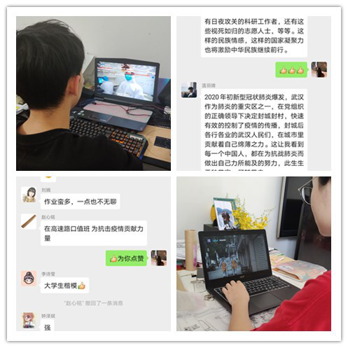 同日,2019级艺术设计硕士1班团支部开展了“弘扬战疫精神”作品展览活动,团员们在线分享了自己近期创作的一份份“弘扬战疫精神”的海报作品,提醒青年团员要以身作则,配合各项疫情防控措施,并积极参与到自己力所能及的疫情防控工作中去。