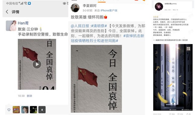 4月4日,艺术学院园林学院研究生各党支部开展了一场特殊的主题为“愿逝者安息,愿生者奋进”的线上主题党日。党员们自发得在朋友圈,微博等网络阵地,缅怀逝者,致敬英雄。党员们纷纷表示,要发扬抗疫英雄的精神,从他们身上汲取奋发的力量,努力践行习近平总书记给北京大学援鄂医疗队全体“90后”党员的回信精神,积极主动为打赢疫情防控阻击战担当尽责,彰显“90”后朝气蓬勃的青春力量。
