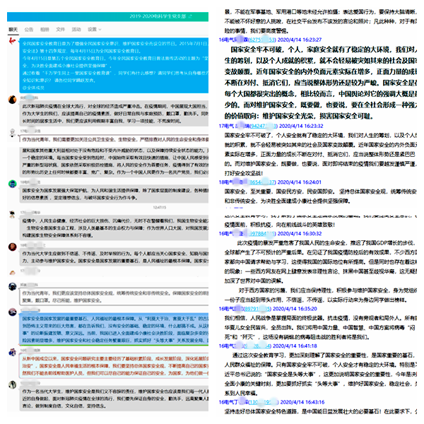 收看完公开课之后,学院组织学生围绕如何增强自身国家安全意识、自觉维护国家安全等方面积极展开讨论。广大学子表示,国家安全离我们并不遥远,居安思危是治国理政的重要原则,国泰民安是人民群众最基本、最普遍的愿望,大学生应时刻关注国家安全,努力提高维护国家安全的能力;生物安全是国家安全的重要部分,疫情期间,大学生要做好日常防护,不接触、购买、食用野生动物,培养健康习惯;要提升自身对信息的辨识能力,不造谣、不信谣、不传谣,规范网络语言,为清朗网络空间做出应有贡献。