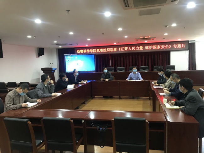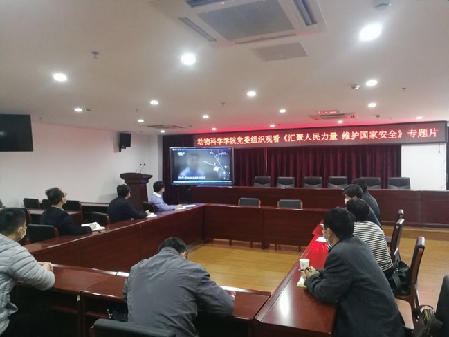 4月16日,动物科学学院党委在学院会议室组织观看《汇聚人民力量 维护国家安全》专题片并交流学习体会。学院领导班子成员、党委委员、部分党支部书记和科级干部参加,学习活动由院党委副书记(主持工作)黄毅军主持。