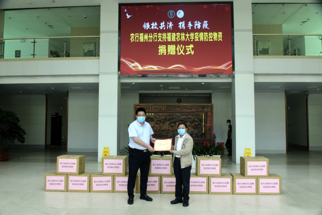座谈会后,农行福州分行向学校捐赠一批疫情防控物资。