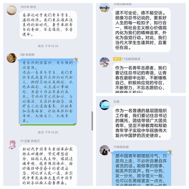 习近平总书记的祝贺与问候在计算机与信息学院青年学子中引发热烈反响。大家第一时间学习总书记的讲话精神,开展网上学习、讨论,踊跃发表自己的学习体会和收获。同学们纷纷表示要学习榜样青年的精神,艰苦奋斗,练就过硬本领,学好专业技能,服务社会,报效祖国。