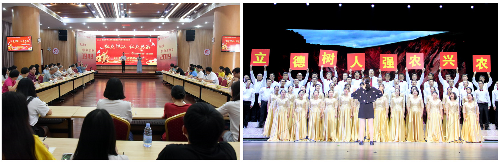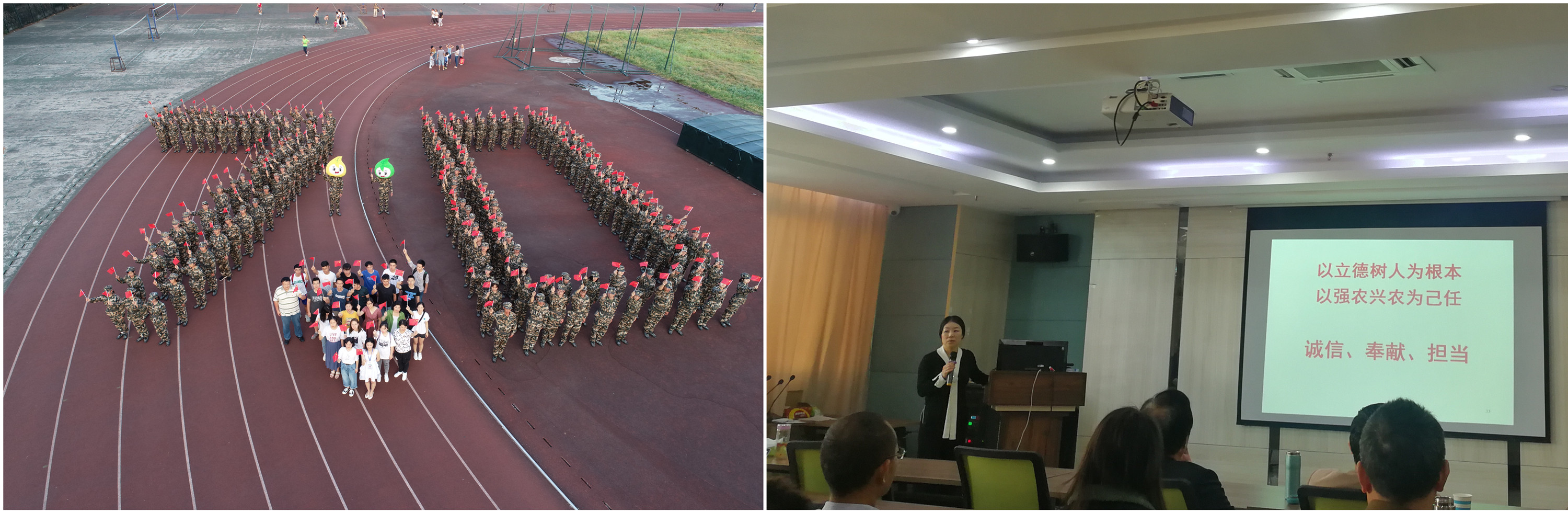 深入开展榜样教育,激发师生的强农报国志。开展先进人物引领教育活动,组织师生对照典型“示范学”,2019年,举办先进人物引领教育分享会7场;开展争做新时代文明农林大人“十不”倡议系列主题活动;农资学科带头人、党的十九大代表廖红教授为农业资源与环境新生讲授导论课,帮助新生端正专业思想,树立正确的职业观,为全院教师分享学习党的十九届四中全会精神体会,并向全体老师发出“诚信、奉献、担当”的资环人倡议。
