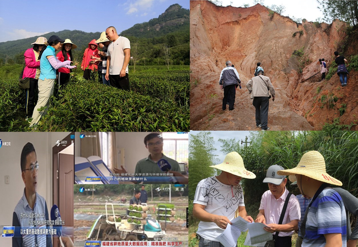 发挥学院土壤生态科研优势,积极服务国家和福建省乡村振兴战略。2019年,获横向项目资助共计88项,到位经费1200万元,位居全校第一。廖红教授团队深入安溪、福安、武夷山等茶产区,探究“茶豆间作”模式,由她主导的生态茶园示范面积累积超过6000亩,辐射面积超过10万亩。茶农笑称她为“拿锄头的女科学家”。王果、邢世和教授团队承担了全省3000多万亩农用地调查点位布设与优化、详查成果集成、详查报告编写等系列任务,为排查福建省土壤的污染状况、基本特征和分布格局,构建福建省土壤环境信息化管理平台,做出了突出的贡献。黄炎和教授团队定向开展了“长汀县侵蚀劣地生态恢复定位监测”“铁观音茶园生态修复技术研究”“崩岗侵蚀现状调查”,为推广“长汀经验”服务乡村生态安全建设提供智力支持。