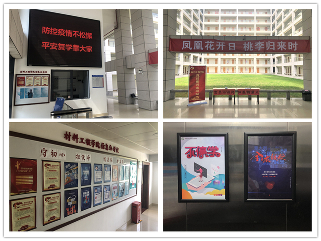 防疫知识宣传到位。学院积极利用官方网站、官方新媒体平台及宣传橱窗、LED电子屏等载体,制作发布《致最美逆行者一封信》微视频、《致2020届毕业生的一封信》推文等宣传材料;在团学活动室、学生宿舍等公共区域悬挂科学防控知识海报、宣传标语,切实提高师生防控意识,营造返校复学的温馨氛围。