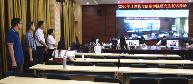 座谈会上,汪世华汇报了我校研究生远程复试工作情况。随后,校领导陪同调研指导组深入各学院进行现场巡视。