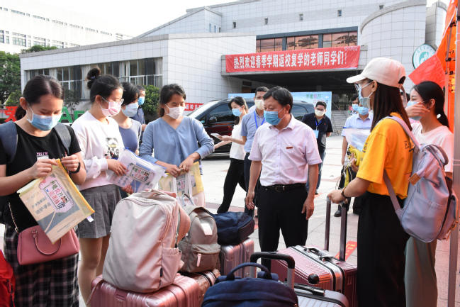 5月18日,按照分批次错峰返校要求,我校迎来2020年春季学期首批返校学生。校党委书记严金静、校长兰思仁深入各报到点和学生宿舍,看望慰问首批返校学生和一线工作人员。