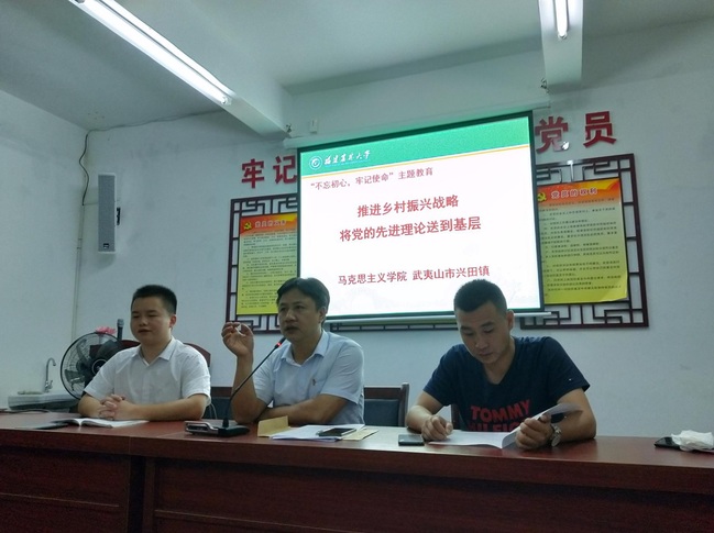 2019年暑期期间,学院组织理论宣讲团队到圆梦村共开展理论宣讲工作近10次,于峰、陈文、温福英、周谟錾、刘淑兰、江书陆、罗贤宇等教师分别为村民作“不忘初心——纪念马克思诞辰201周年”“习近平青年知青岁月”“乡村振兴的人才效应”“继承法案例”“乡贤文化助推文明乡风建设”“怎样成为内心强大的人”“乡村生态振兴”等主题宣讲活动,给村民奉献了一堂堂生动形象的课程,结合当地乡村振兴现状,宣讲形式新颖、契合当前农村基层实际,将理论学习与社会实践紧密结合起来,帮助解决当地的重点难点问题,有效提高了当地人们的科学素质与法律意识、生态意识等,增强了当地人们的文化自信与文化自觉,这种基层调研与理论宣讲相结合的形式深受当地群众的欢迎。