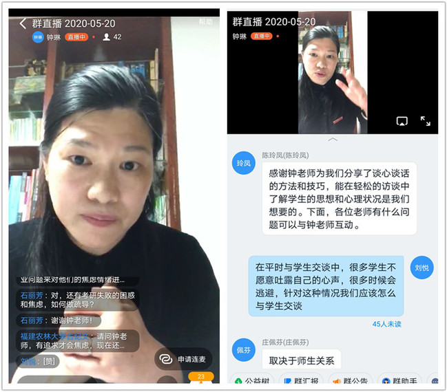 钟琳从疫情下学生生活状况、身体状况、抑郁以及家庭关系四个方面展开。讲座中,钟琳用丰富的案例、生动幽默的语言详细讲解了在工作中如何与学生展开谈心谈话,如何建立良好的师生关系,以及用什么样的方式进行谈话更能取得学生的信任。在互动答疑环节,参加培训的老师们都踊跃发言,提出了“如何缓解毕业生升学、就业的心理压力” “与学生交谈时,学生不愿吐露心声,会自我逃避,遇到这种情况怎么办”等一系列现实生活中老师与学生交谈中会遇到的问题。钟琳对以上问题进行了详细解答。