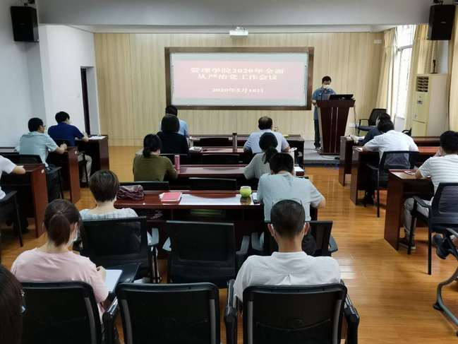 5月18日,管理学院召开2020年全面从严治党工作会议,学院领导班子成员出席会议,院纪检委员黄怡主持会议。